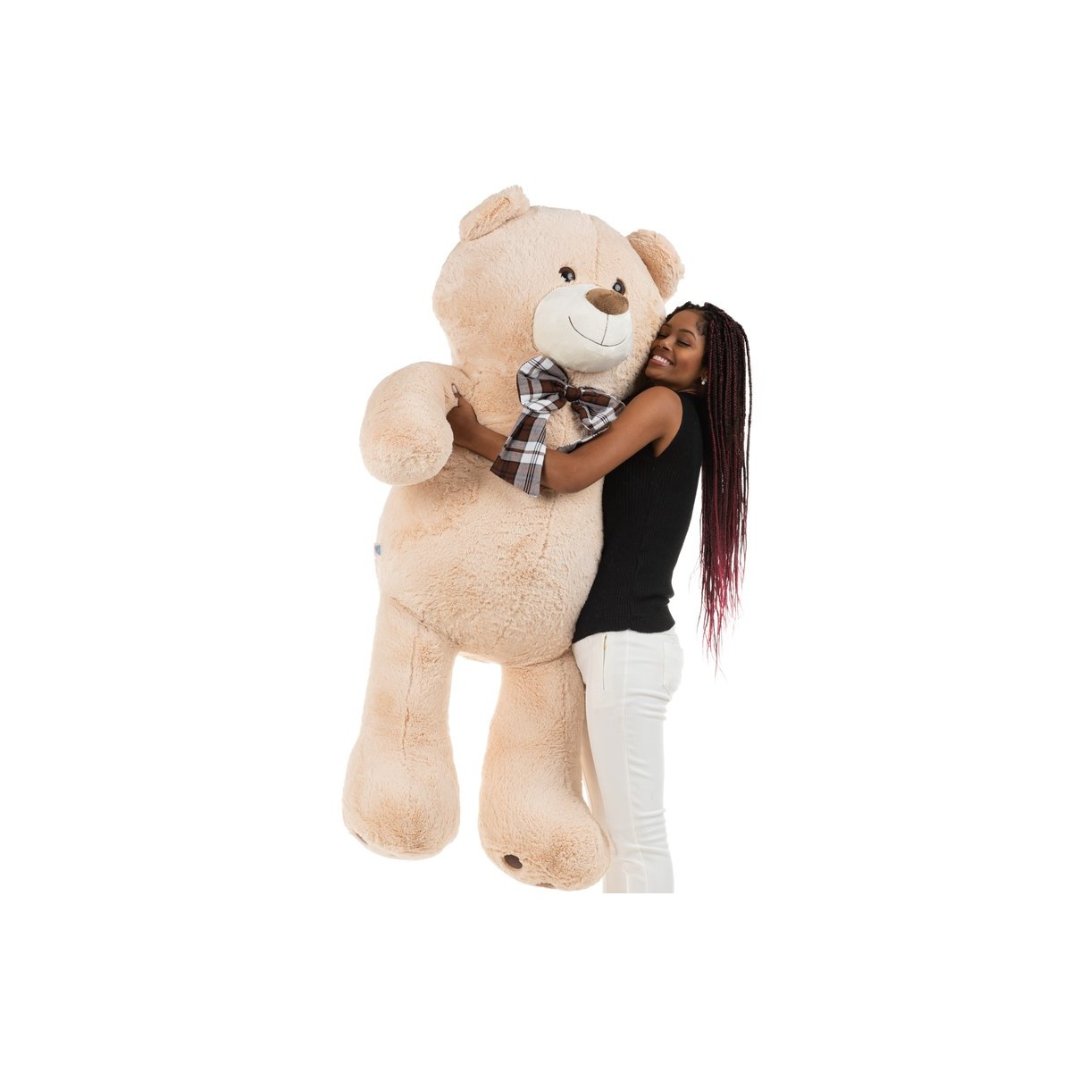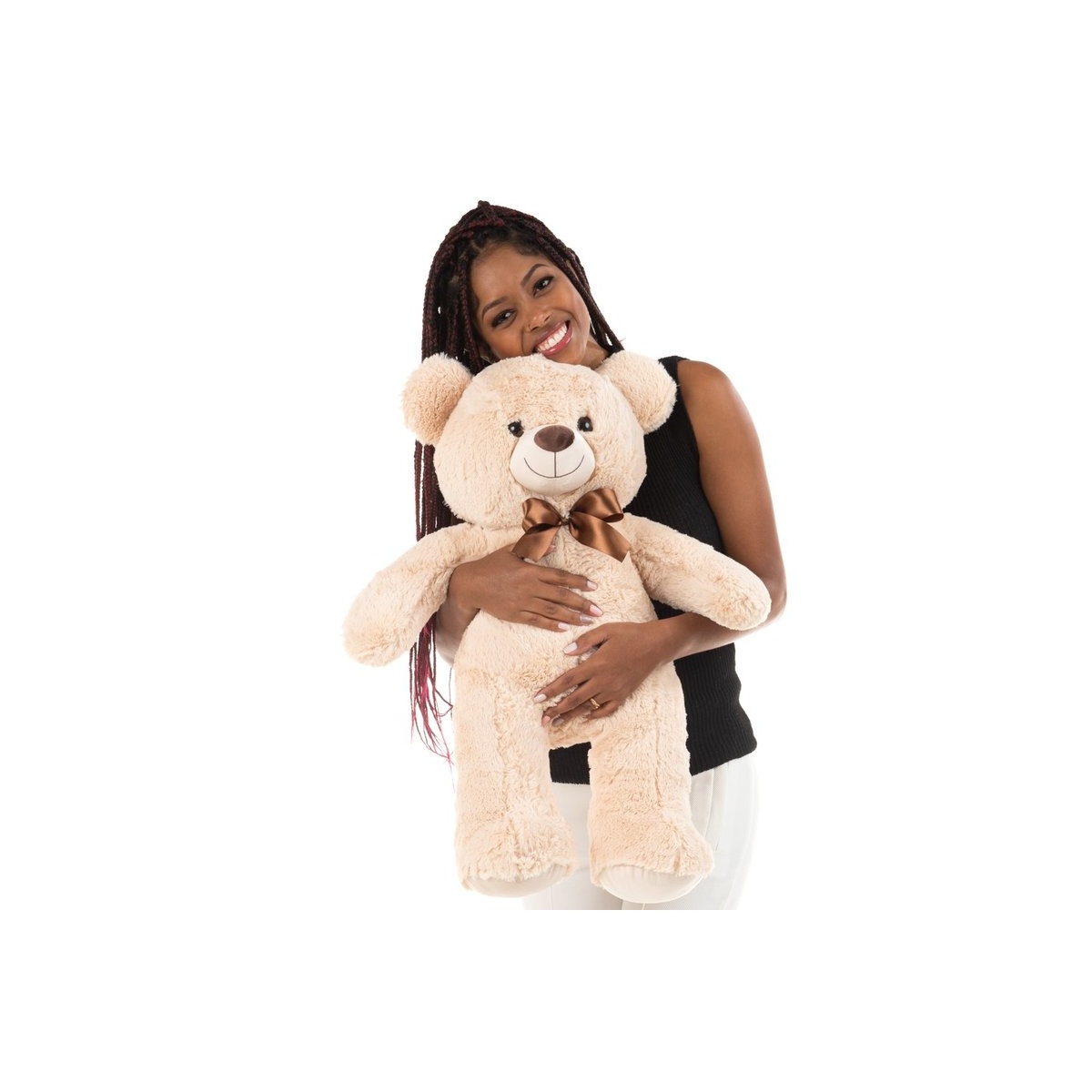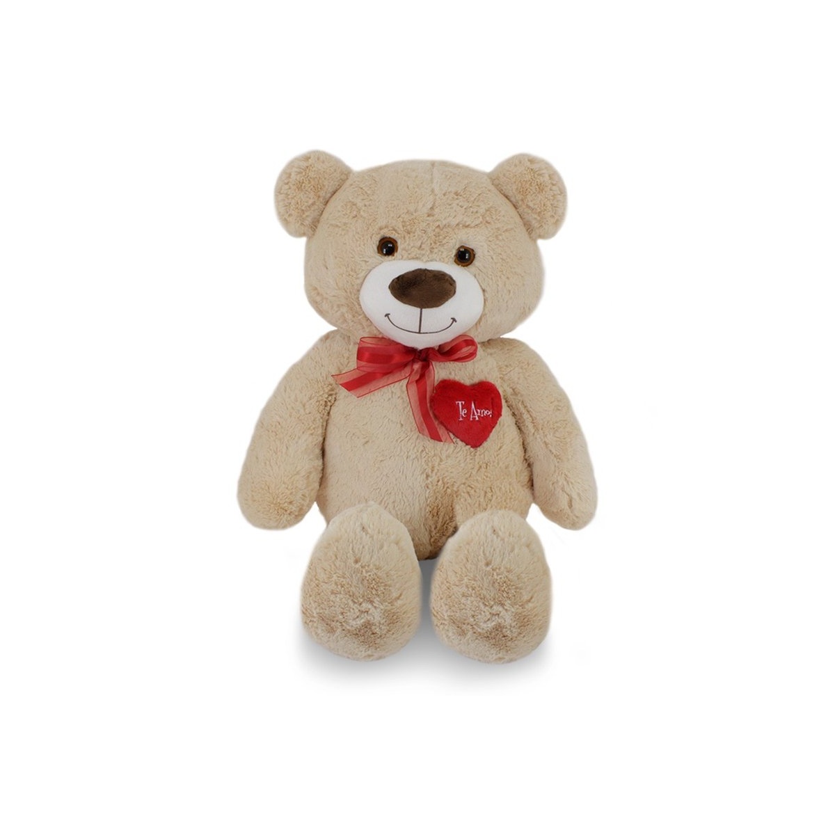 Urso de Pelúcia com Coração 70 cm - Josh com Laço Areia