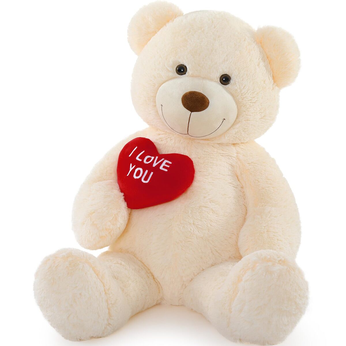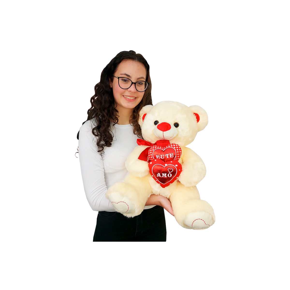 Urso de Pelúcia com Coração 45 cm - Amoroso Pérola