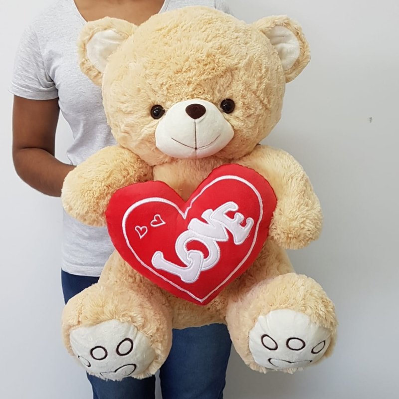 Urso de Pelúcia Gigante com Coração Love 1 metro - Marrom