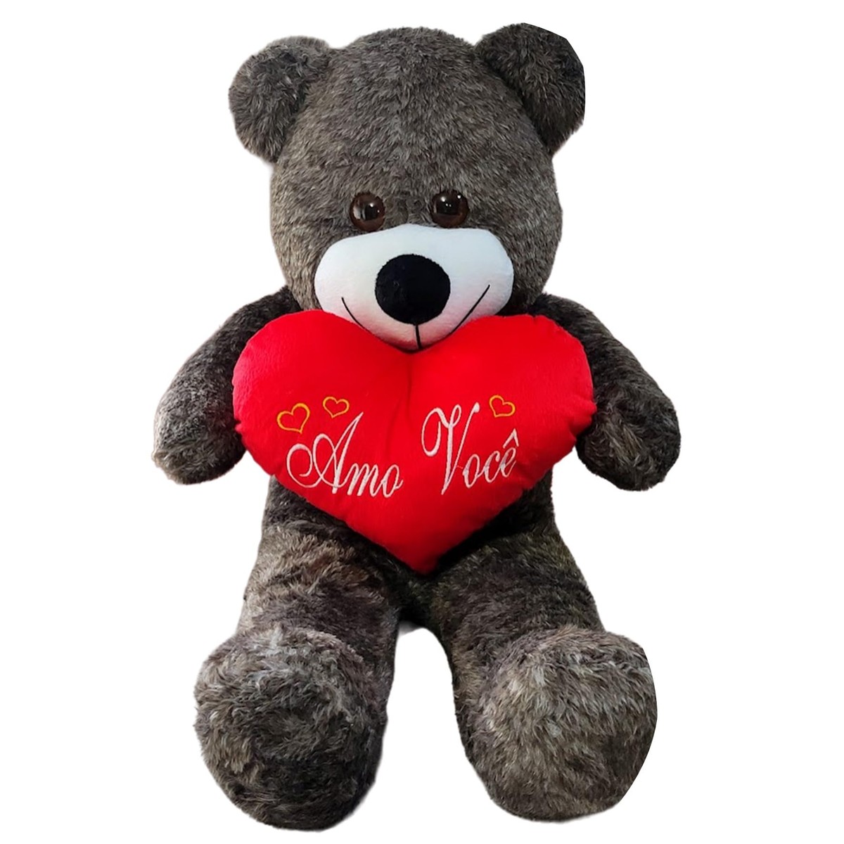 Urso de Pelúcia com Coração Bordado 50 cm - Fofo Marrom