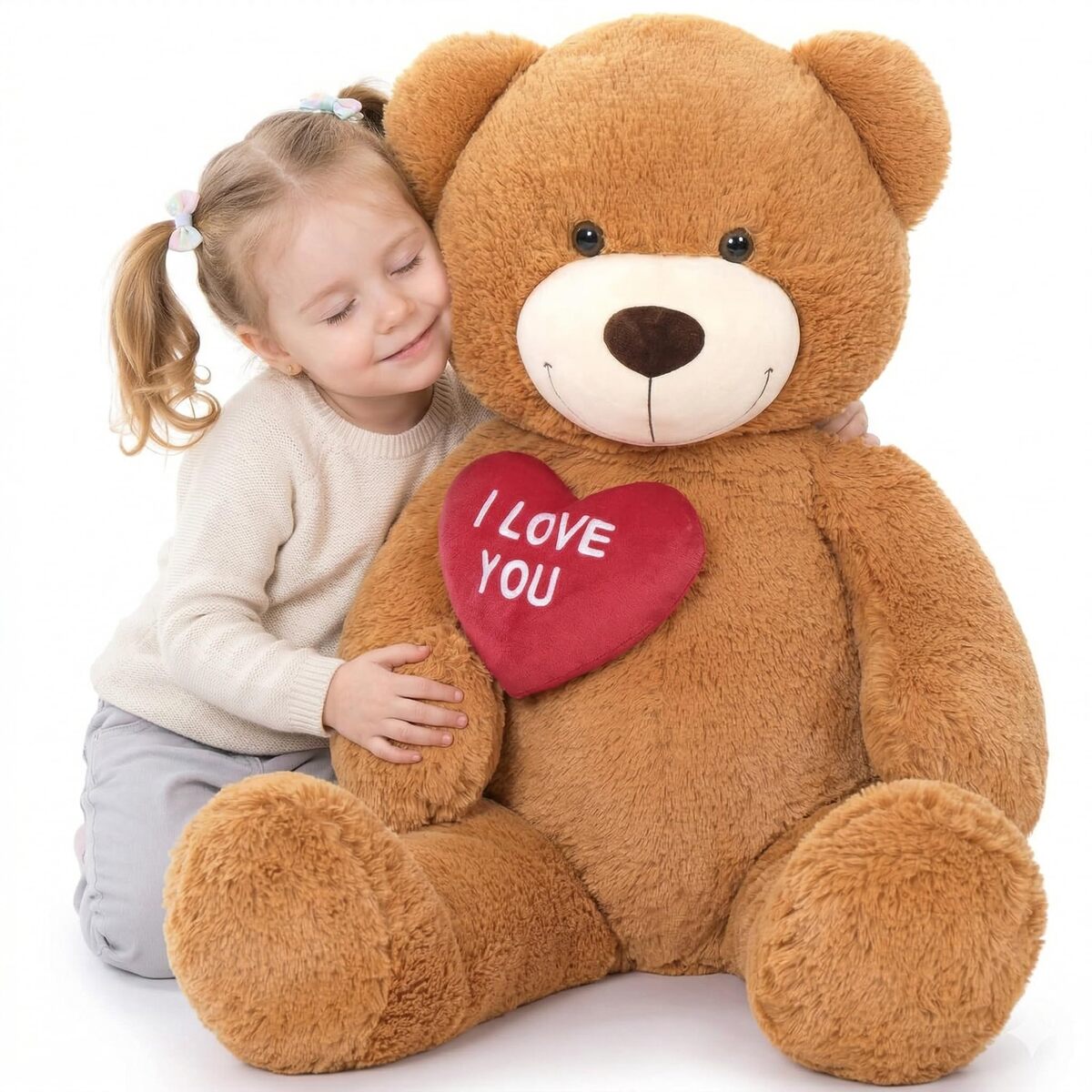 Urso de Pelúcia Gigante com Coração 1 metro e 20 cm - George Marrom