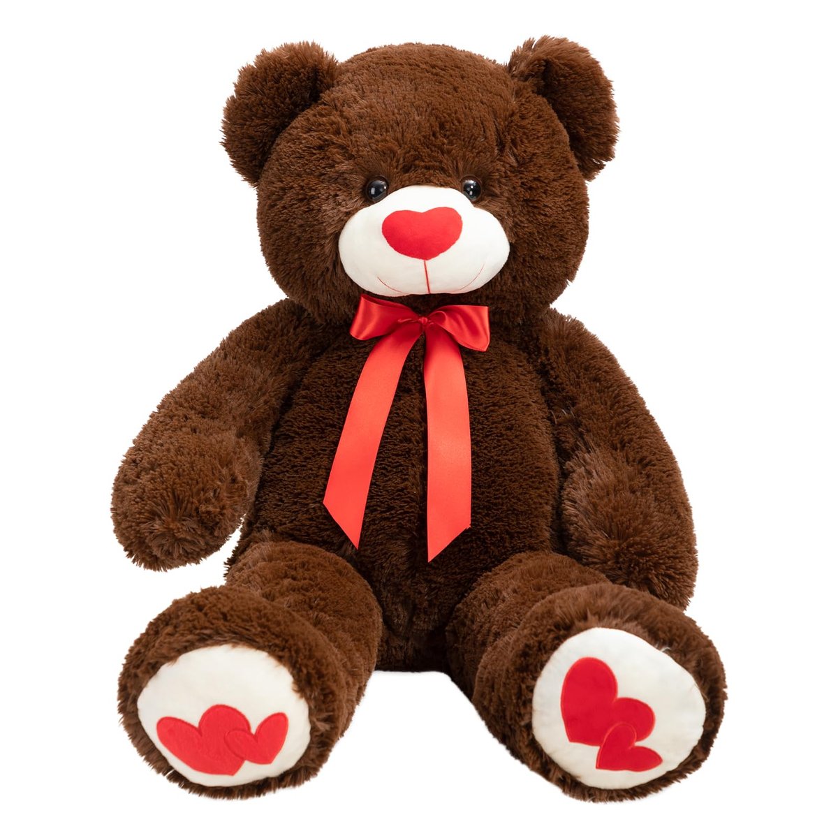 Urso de Pelúcia com Coração 70 cm - Josh com Laço Marrom